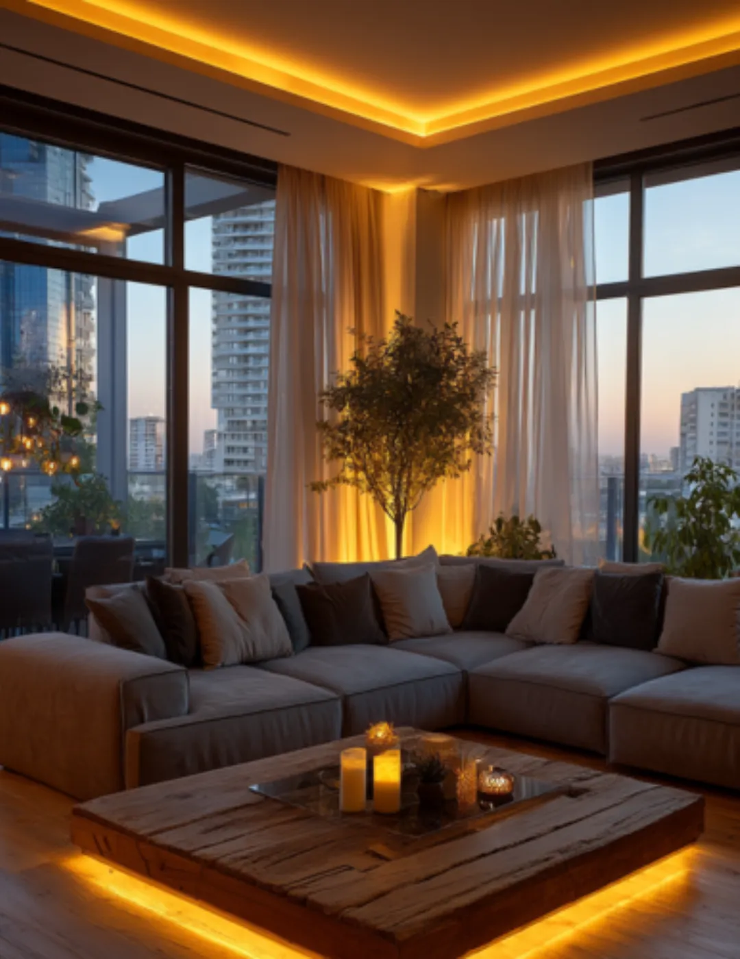 מערכות תאורה והצללה שמתכווננות באופן אוטומטי בהתאם לתנאי התאורה בחוץ או לשעה ביום בהתאם לתרחישים מובנים או באופן יזום על ידכם. ואף יותר מזה, שינוי בלחיצת כפתור של גוון האור בהתאם לתרחיש הרצוי. למעשה הבית שלכם מתאים את עצמו אליכם.